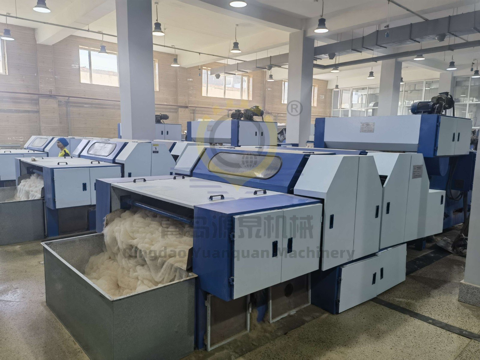 Esta máquina utiliza una disposición de doble cilindro, uno para la apertura preliminar y otro para la apertura fina. El rodillo de trabajo con rodillo desforrador combinado con el cilindro puede abrir y cardar fibras individuales y fibras animales esponjosas. Y el rodillo fino tiene el efecto de eliminar el pelo grueso y las impurezas; es el primer proceso en la industria del cardado. Con un efecto sobresaliente, es un producto esencial de la línea de producción de cardado.