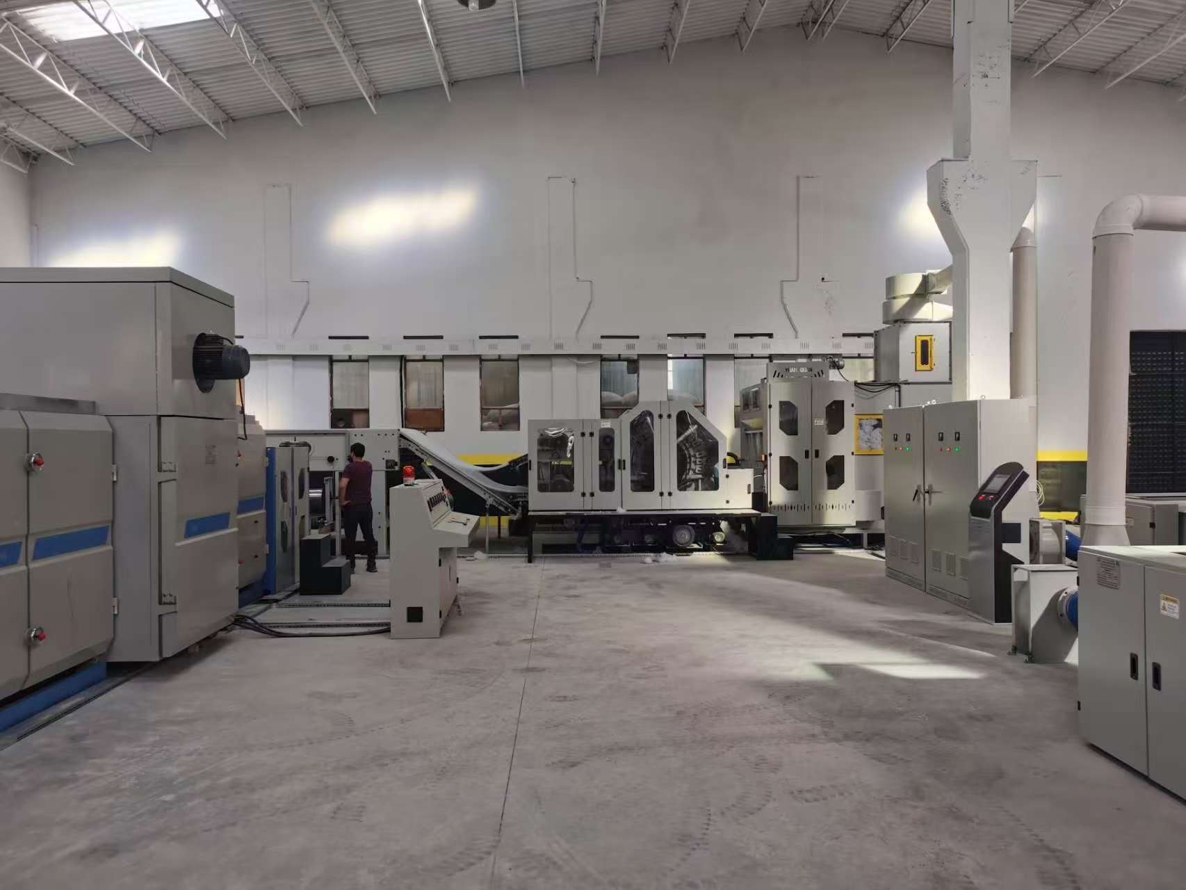 Una empresa turca de textiles para el hogar se puso en contacto con nosotros para una línea de producción de guata suave completa para producir guata libre de pegamento para relleno de edredones, núcleos de almohadas, relleno de juguetes de peluche y protectores de colchón ligeros. El cliente necesitaba una línea capaz de producir guata suave, transpirable y no irritante para satisfacer la creciente demanda de productos para el hogar ecológicos e hipoalergénicos. Nuestra solución integró equipos clave, incluyendo el Abridor de Balas Automático, la Máquina de Apertura de Fibra de Poliéster, la Cardadora y el Cruzador de Capas para garantizar un procesamiento de fibra y una formación de banda estables.